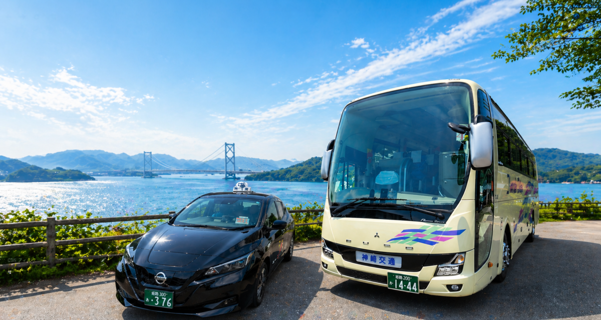 姫路・播磨エリアを中心に兵庫県内全域へ配車可能な貸切バス・観光バスのご利用やバスのみの見積もりも承っております。学校行事・団体旅行・イベント送迎など幅広い用途に対応し、用途や人数に応じた最適な車両を提案いたします。